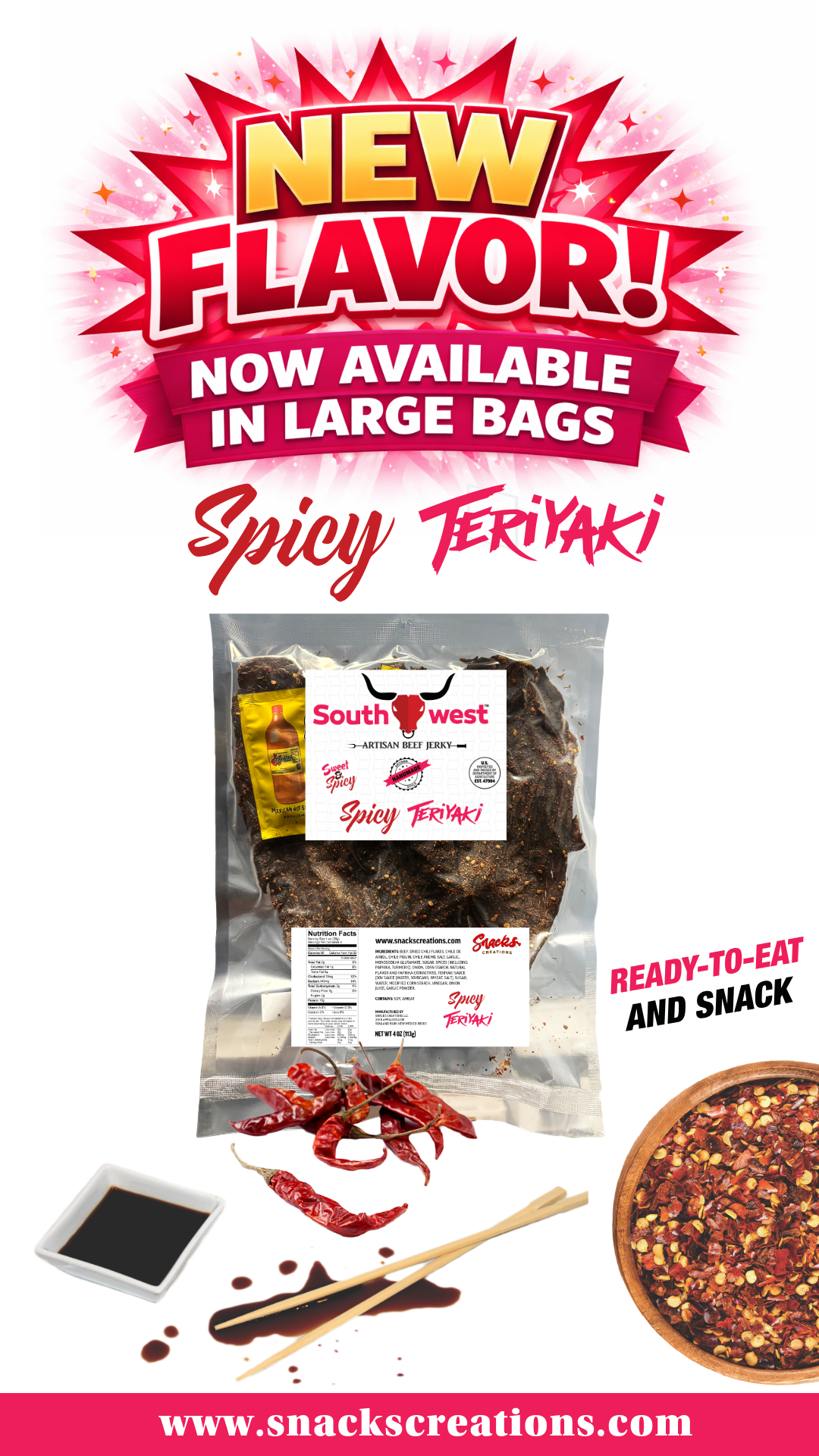 Welcoming our new Spicy Teriyaki Beef Jerky- featuring a balanced sweet and spicy flavor, crafted with care